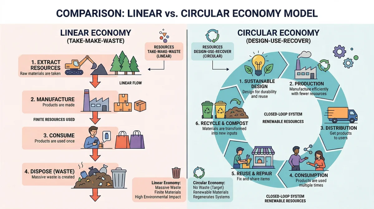 Imagine a world where the concept of waste simply doesn't exist. In nature, every output from one system is an input for another; a fallen leaf becomes food for a tree. For most of the last century, however, humans have lived in a linear economy: we take resources from the earth, make products, and eventually throw them away. When that product is a plastic bottle that ends up in the Great Pacific Garbage Patch, that linear path leads to a dead end for the ocean.